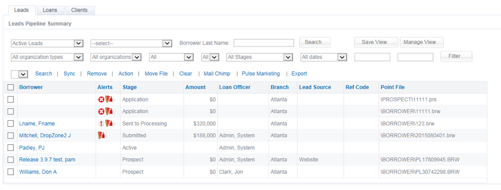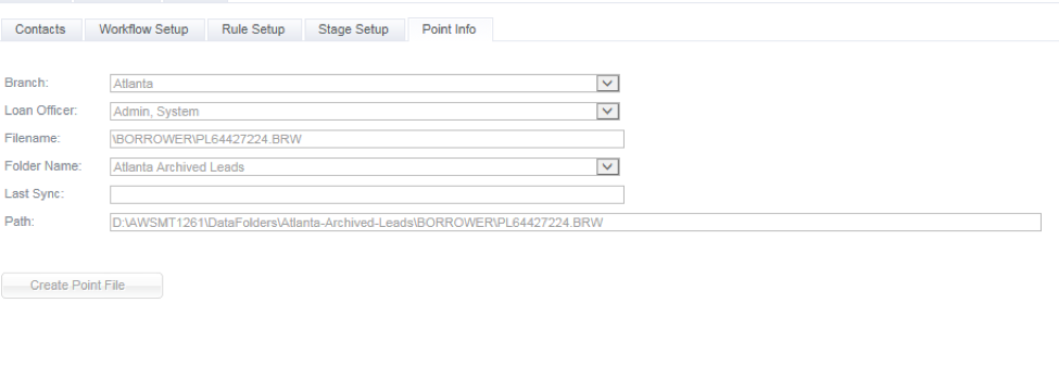 From the lead screen choose the “Setup” tab and “Point Info” under the setup